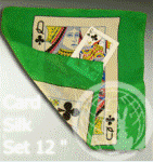 Imported from Italy, these are 100% beautifully printed 100% silk. You are supplied a pack of two silks, one shows a blank card the other a regular playing card. Routines are endless, but we give an instruction with suggested effects. Various sizes according to your requirements. Perfect, quality silk with a playing card printed inside a border. Available in three different sizes ideal for close up or stage. Each set comes with one printed and one blank card silk, plus instructions for various tricks.