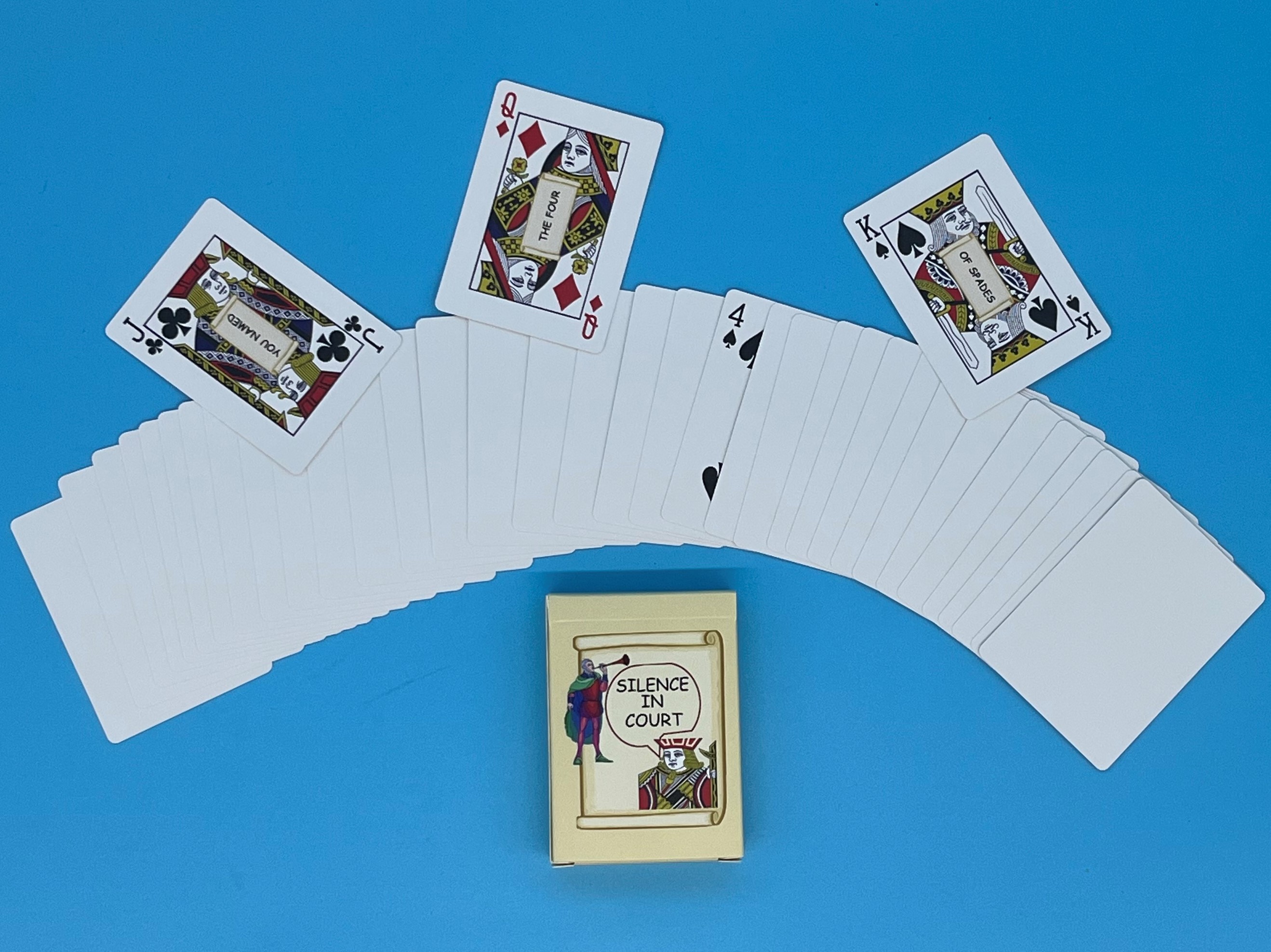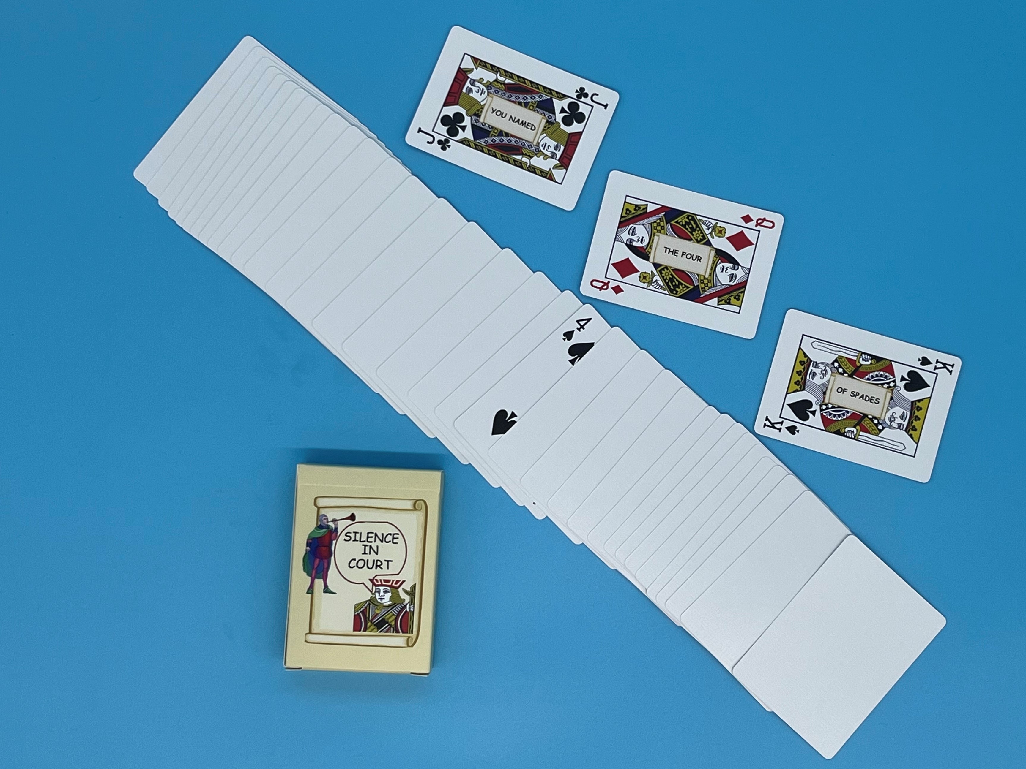 A pack of cards is introduced in a novel manner. Claiming that the Court Cards can read a spectator's mind, a spectator is asked to think of any pip card. The pack is removed and spread face down, revealing a Jack, Queen & King to be face up showing printed scrolls of the named card. Then, without any false moves, the pack is simply spread face up on the table, and it's an entirely blank pack with the exception of one card - The named card is the only printed card in the deck.