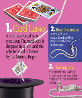 - Novel magic with rope & cards