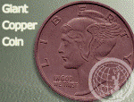 These Giant Coins (commonly called Jumbo Coins) are a large size replica of a regular type coin. They are ;excellent solid metal coins, 3" (7.5cm) diameter, beautifully made with a good weight, ideal for the many routines that require a big coin finish.