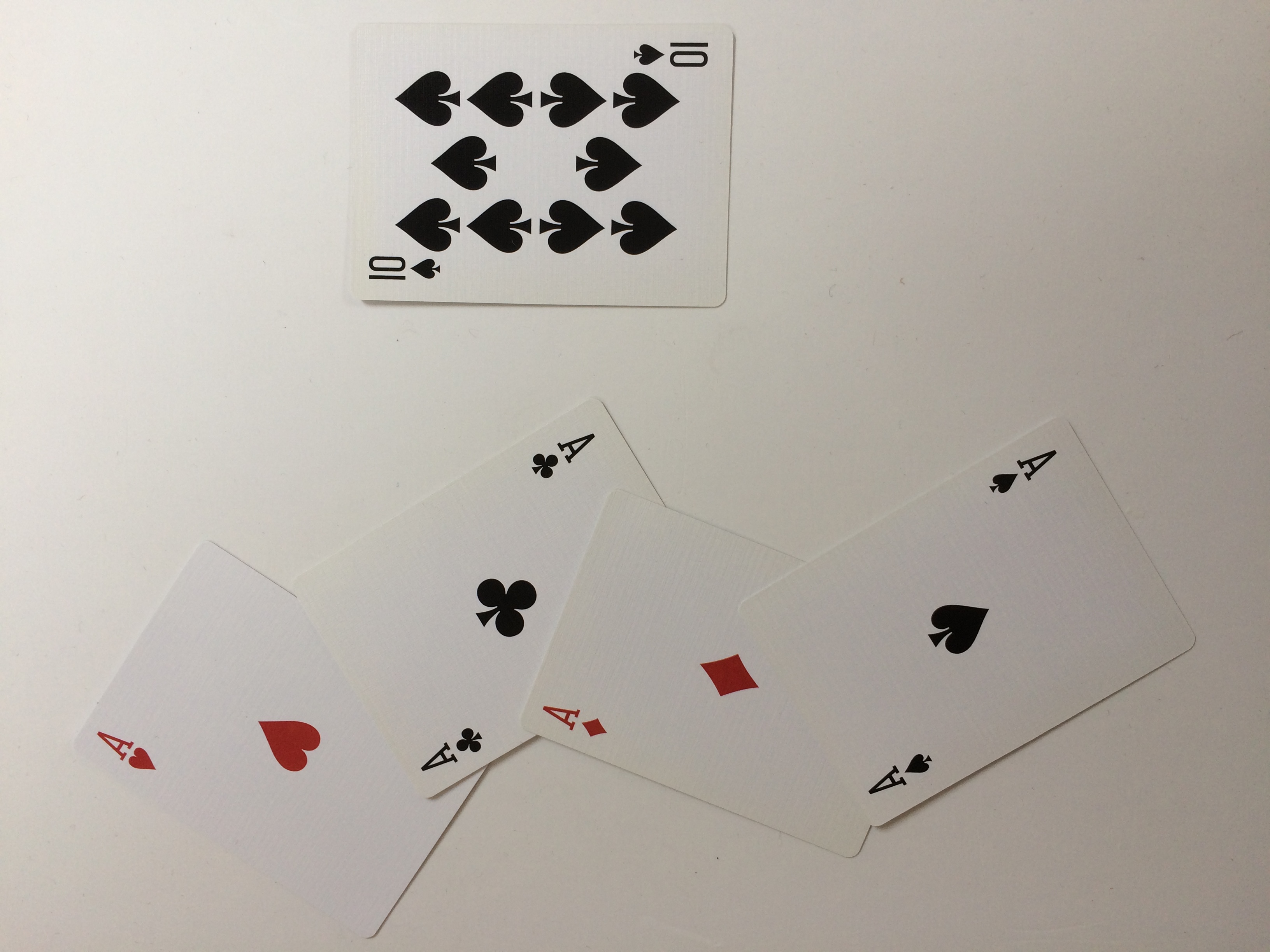 Five cards are displayed in a spread as a Royal Flush, two are turned face down and the spectator's are questioned on what's been done. Nothing has happened so far, but with a snap of your fingers - all cards are face down. Then with another snap, the cards are turned over revealing them all as the 4 Aces.
