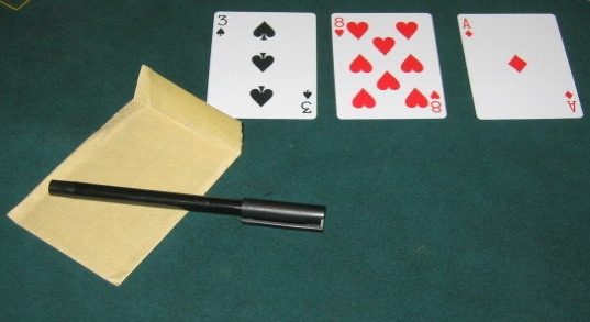 This is the perfect trick for baffling people who are familiar with the standard, now classic version that uses outs (commonly known as Mind Control). The routine is deliberately similar to begin with - however, your audience soon becomes aware of the difference, then there's no going back and they'll have no idea of the method.The ;magician begins by placing three ;playing cards, an envelope and a pen onto the table. Then, proceeding to tap each card with the pen, the magician claims to have made a prediction of one of the cards and that card is going to be the one which the spectator freely chooses. The spectator is asked to call stop at any time and then the magician hands the pen for them to read a prediction written on it. Until now, everything has followed the standard routine. However, everything changes from this point onward - they read the pen, they take a look in the envelope and they turn over the cards, three predictions read correct and the chosen card is the one predicted, it's that simple and in this trick, there really are no outs! What's more, it works 100% exactly the same every time whatever card they choose. It's simple to perform, uses an original method, this is something you'll perform again and again.Supplied with all you need to work it right away.