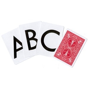 These bicycle-backed alphabet cards can be used with any number of tricks and routines. Big, bold, black individual alphabet letters are printed on the faces of quality red backed bicycle backed cards. Perfect for the mentalist, kids performer or for that special close-up magic trick. Each pack has a total of 35 cards and includes duplicates of the more popular letters.