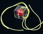 An extremely easy to do trick that completely baffles spectators. A solid wooden ball is displayed with two cords running through its centre. It's then enclosed and tied inside a clear plastic box while the spectators hold the ends of both cords. The magician holds the box for merely a moment and then removes both box and ball from the cords, clearly penetrating them. Everything is immediately given for close examination.